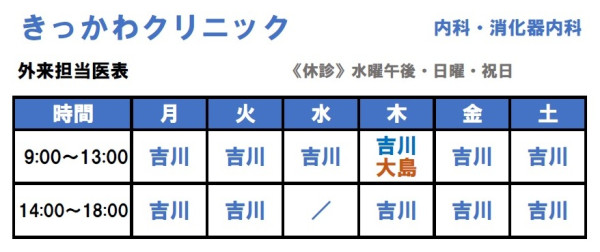 診察医師のご希望がある場合は、担当医表をご確認の上でご来院くださいますようお願いいたします。